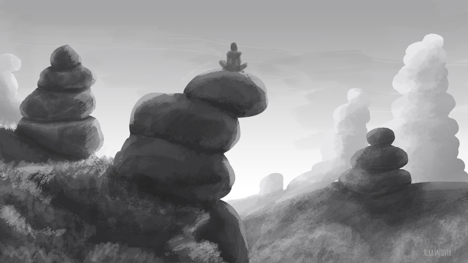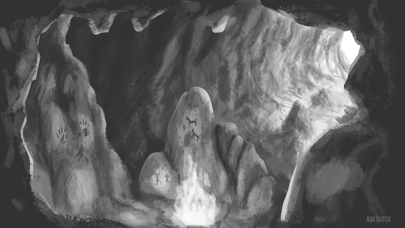 Realicé toda la parte gráfica. Tuve algunos problemas en encontrar el estilo que buscaba, probé varias técnicas y al final escogí hacer un cartoon con un toque dulzón. Utilicé pinceles de acuarelas para el color.